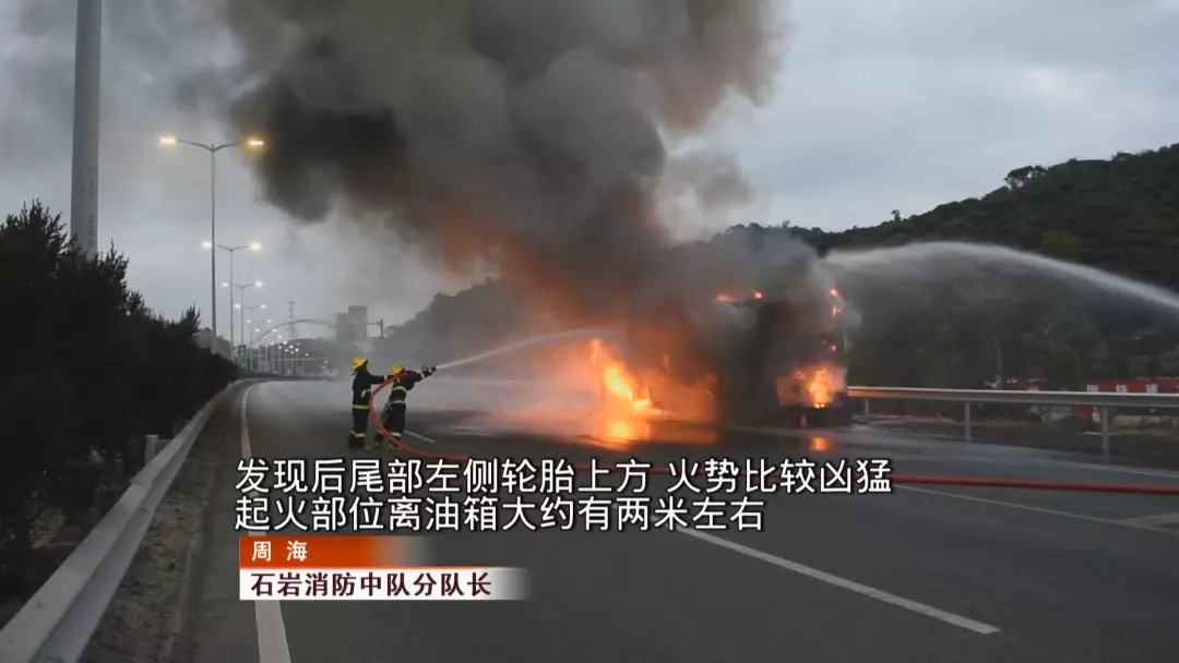 由于陳小姐及時報警,石巖消防中隊官兵在起火不久后便到達現場。到場后,消防立即要求還在救火的兩名司機撤離。