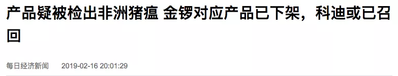 金鑼對(duì)應(yīng)產(chǎn)品已下架,科迪或已召回
