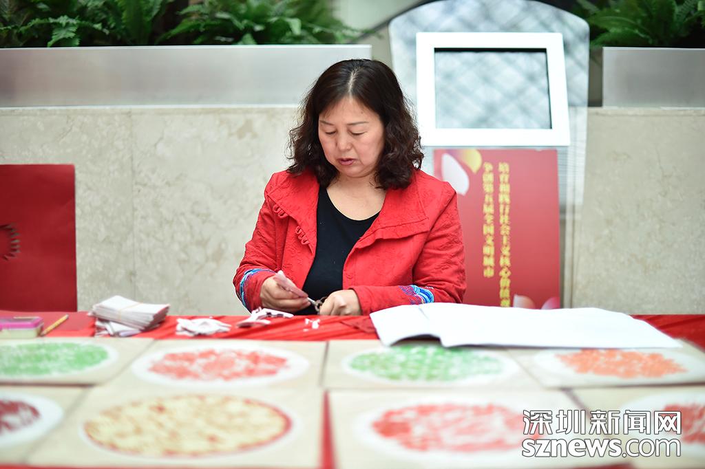 活動(dòng)現(xiàn)場(chǎng)的剪紙藝人正在創(chuàng)作,剪紙藝術(shù)已列入國(guó)家級(jí)非物質(zhì)文化遺產(chǎn)名錄,也列入了聯(lián)合國(guó)“人類非物質(zhì)文化遺產(chǎn)代表作名錄”。