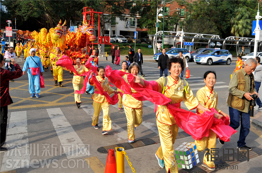 這支喜慶的團(tuán)拜巡游隊(duì)伍浩浩蕩蕩地從梅林一村中央大綠洲舞臺(tái)出發(fā),圍繞整個(gè)梅林一村小區(qū)。