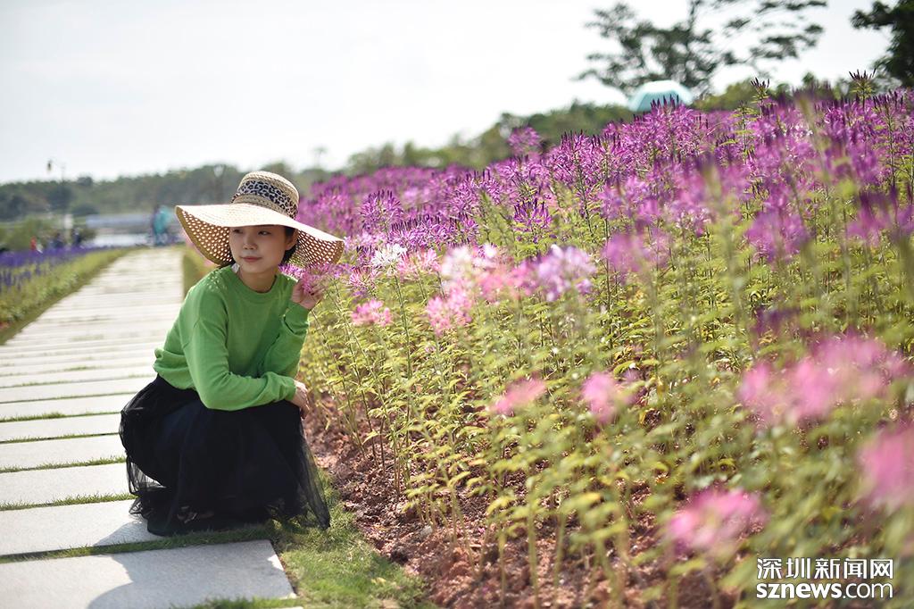 醉蝶花花海前,兩位市民擺出“Pose”合影