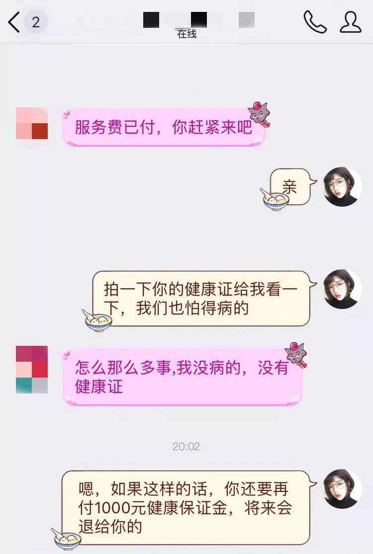 所謂一波三折,小李同學一夜三次網(wǎng)招“失足女”,先后共轉(zhuǎn)賬近6000元,最終敗興而歸。而三次網(wǎng)絡招嫖被騙所遇套路大同小異: