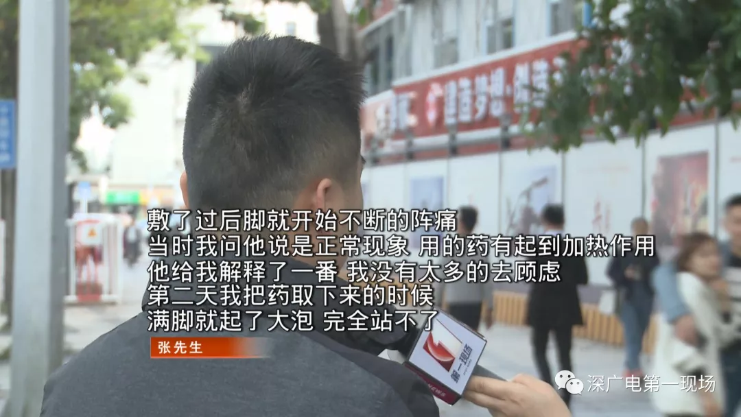 張先生曾跟簡(jiǎn)某討說(shuō)法,要他退500塊藥費(fèi),簡(jiǎn)某說(shuō)退錢是不可能的,而且張先生的水泡,他就能處理。但張先生已經(jīng)不敢相信簡(jiǎn)某。