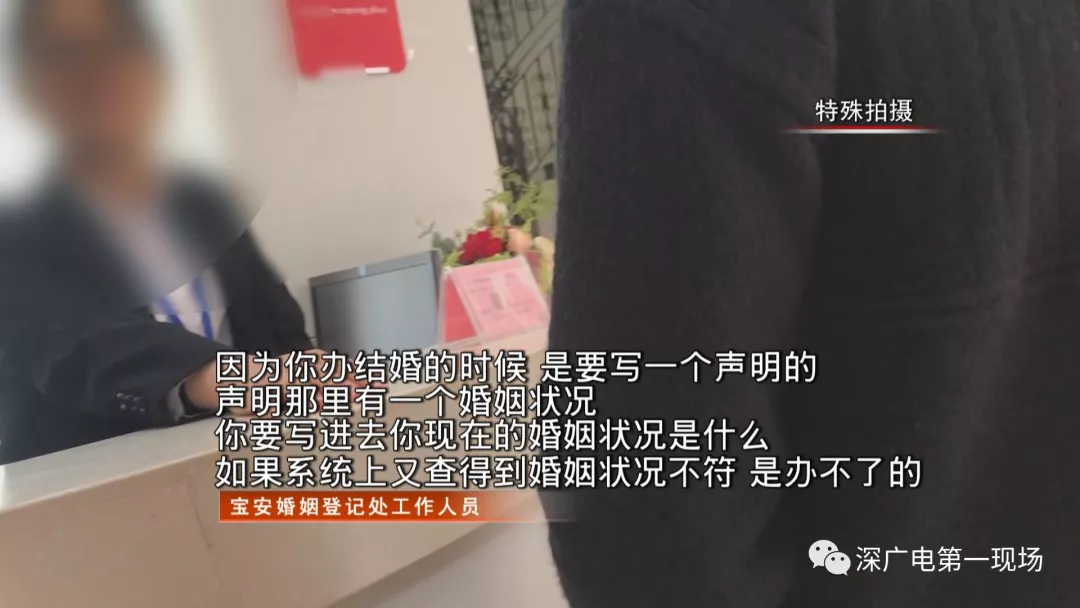 無(wú)奈之下,伍小姐只得再次來(lái)到深圳,打算為自己正名。記者和伍小姐首先來(lái)到寶安婚姻登記處,工作人員介紹,在婚姻登記過(guò)程中,男女雙方是無(wú)法隱瞞自己的婚史的。