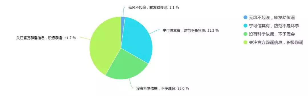 “舌尖上的謠言”長(zhǎng)期在朋友圈里“屢辟屢傳”,其中一個(gè)重要原因是因?yàn)橄M(fèi)者有著極大的安全焦慮。食品謠言的存在,不僅說明了消費(fèi)者在相關(guān)科學(xué)知識(shí)方面的空白,也反映出社會(huì)對(duì)食品安全的擔(dān)憂。不過經(jīng)過相關(guān)部門和媒體的大力宣傳,已經(jīng)有41.7%的受訪者會(huì)主動(dòng)關(guān)注官方辟謠信息,積極辟謠。