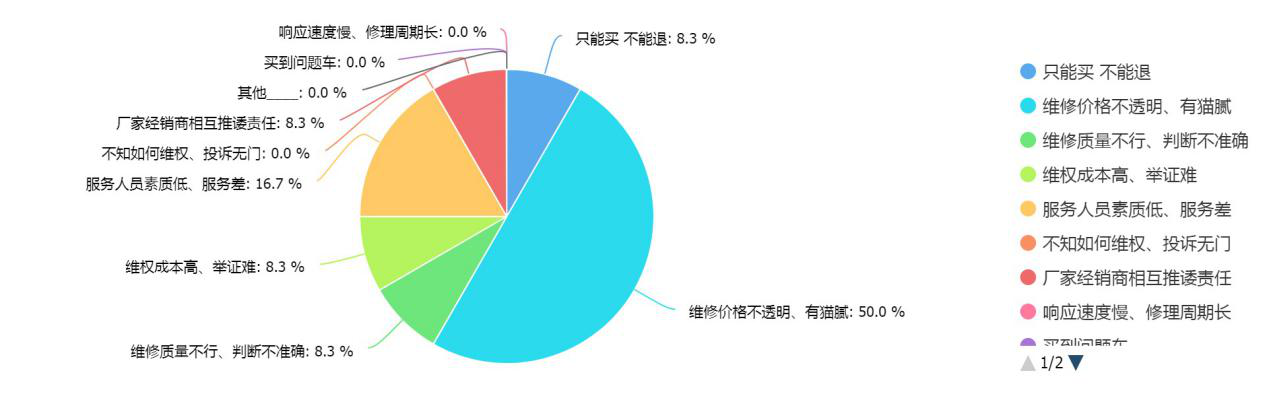 本次調(diào)查問卷顯示,網(wǎng)友覺得汽車質(zhì)量問題集中在發(fā)動機和車身附件及電器,而在質(zhì)量維修上,有50%的消費者認為維修價格不透明、有貓膩,維修保養(yǎng)服務(wù)令消費者最不滿意的部分則是久修不愈。