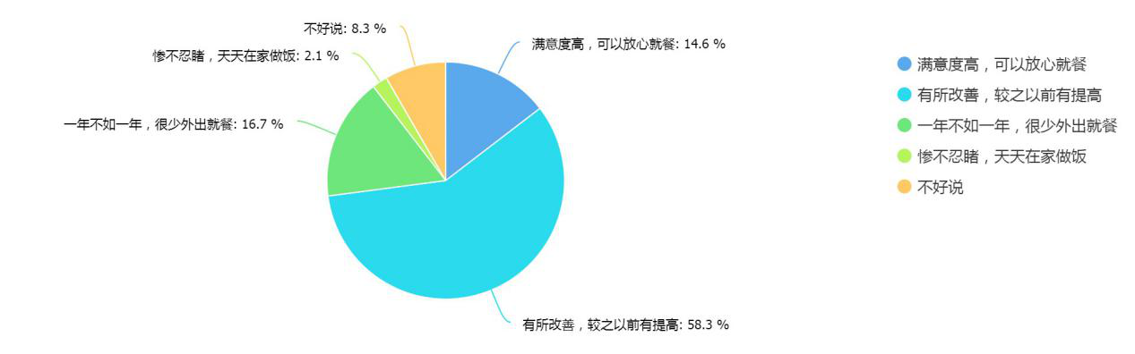 對于深圳白領(lǐng)非常關(guān)心的餐飲店面,接近6成受訪者認為比之前有所改善,14.6%受訪者認為可以放心就餐。