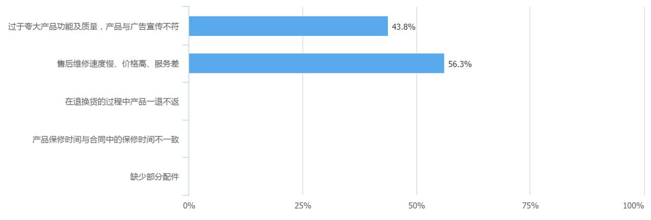 用戶最關(guān)心的問題,售后維修依然是重災(zāi)區(qū),56.3%的網(wǎng)上消費者更關(guān)心售后維修問題,維修速度慢、價格高、服務(wù)差是網(wǎng)上消費者對數(shù)碼家電售后領(lǐng)域普遍的認知。