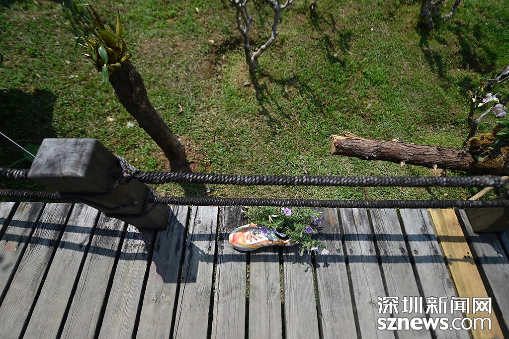 園林設(shè)計師將廢棄的鞋子進行二次利用,將花草種在鞋子中