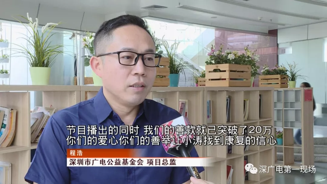 廣電公益基金會項目總監(jiān)程浩告訴記者,這也是《第一現(xiàn)場》近期救助個案中速度最快的一次,特別感謝深圳這座愛心的城市,可愛的市民的的善舉,讓小濤找到了康復(fù)的信心。