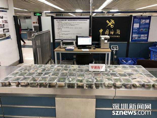 3月21日晚,兩名男性旅客各自提著兩個外形相似的大行李袋及一副魚竿,從羅湖口岸入境。在對其行李進行X光機檢查時,海關關員在機檢圖像中發(fā)現(xiàn)了異常,圖像顯示四個袋子中的物品呈現(xiàn)生物特征,而且有若干個相同的容器包裝著,于是海關關員要求兩名旅客打開行李袋進行詳細檢查。