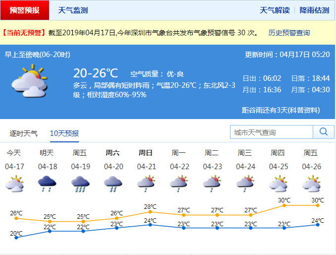 深圳新聞網(wǎng)2019年4月17日訊 連續(xù)6天的持續(xù)性降雨結(jié)束,今日深圳多云可見(jiàn)陽(yáng)光,但"好景不長(zhǎng)",記者從市氣象臺(tái)獲悉,18~20日又將迎來(lái)一輪暴雨局部大暴雨的降雨過(guò)程,21日降雨才會(huì)明顯減弱。