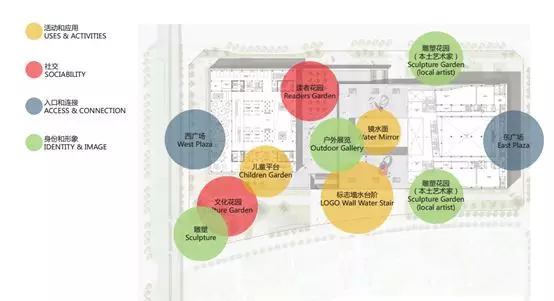 同時,設(shè)計定義了不同的功能性景觀分區(qū),一靜一動、或?qū)庫o或喧囂、光影交融、密集與開放、集聚與獨(dú)處的可變空間,為主體建筑附加了多樣化的室外活動場所,例如專門為圖書館訪客設(shè)置的讀者花園、兒童平臺、文化花園,以及在美術(shù)館區(qū)域設(shè)置的雕塑花園、戶外展覽區(qū)及鏡水面廣場。滿足不同的活動場景下市民對空間的需求,讓城市空間真正地為城市及市民所用。