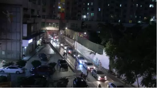 眾多車輛堵成了一條長龍,