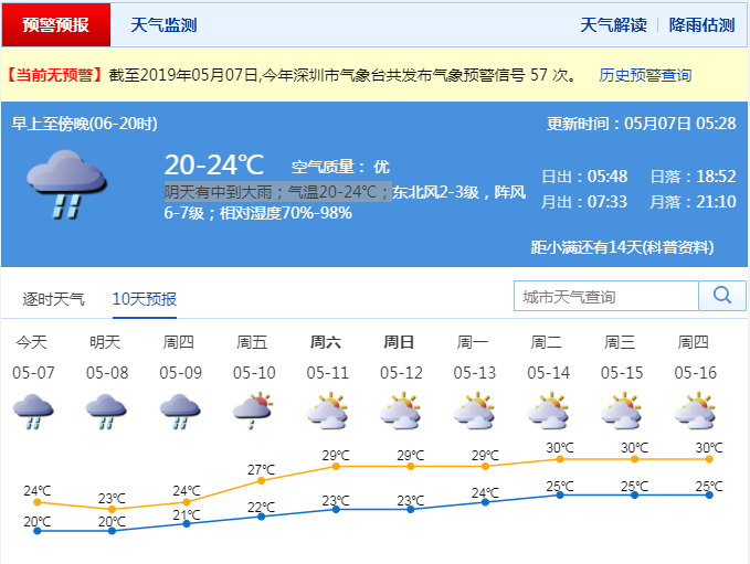 深圳新聞網(wǎng)5月7日訊(記者 陳婕)5月6日是“立夏”節(jié)氣,但受陰雨天氣影響,全市氣溫在22℃徘徊,最高氣溫甚至比去年“冬至”還低。記者從市氣象局了解到,預(yù)計7-9日,深圳有明顯降水,沿海高地和海區(qū)最大陣風(fēng)7級左右。