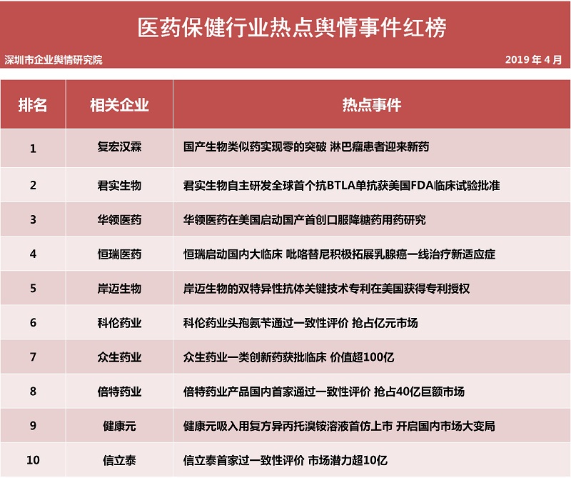 醫(yī)藥保健品行業(yè)熱點(diǎn)事件排行榜榜單說(shuō)明: