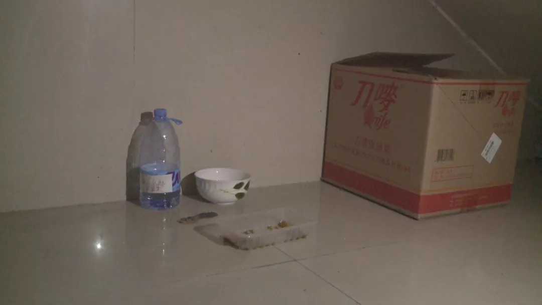 ↑業(yè)主自發(fā)投放的水、貓糧和貓窩