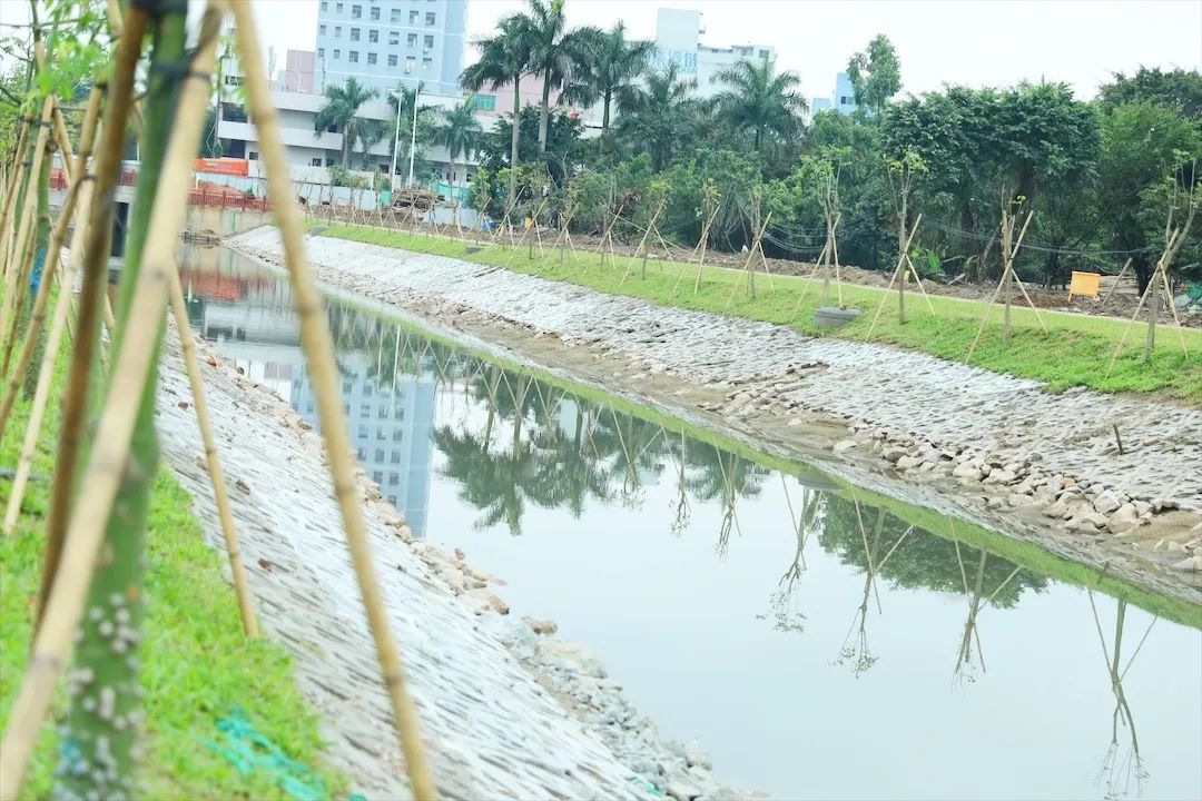 張堯:“石圍涌的治理長(zhǎng)度大約808米,自2018年7月開(kāi)工治理以來(lái),到目前基本完成了所有的施工內(nèi)容,主要包括河道主體施工、沿線截污與景觀綠化,將之前的臭水溝改造成了綠草如茵、游人不斷的景觀長(zhǎng)廊?!?/span>