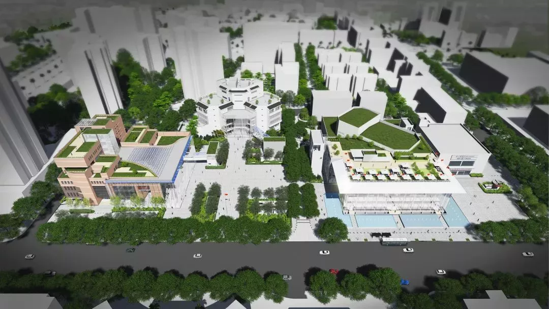 由原群眾藝術館、影劇院和圖書館組成,建成后群眾藝術館將更名為文化館,影劇院更名為音樂廳,圖書館和文化廣場的名稱則保持不變。