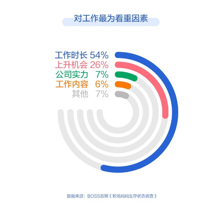 根據(jù) BOSS直聘發(fā)布的《2019職場媽媽生存現(xiàn)狀調(diào)查報(bào)告》,有65%的受訪職場媽媽認(rèn)為自己有潛在的抑郁傾向,逾八成媽媽對(duì)孩子感到愧疚,工作時(shí)長是職場媽媽在工作中最為看重的要素。一面是嗷嗷待哺的孩子,一面是苦心經(jīng)營的工作,事業(yè)與家庭的平衡或成職場媽媽焦慮的根源。