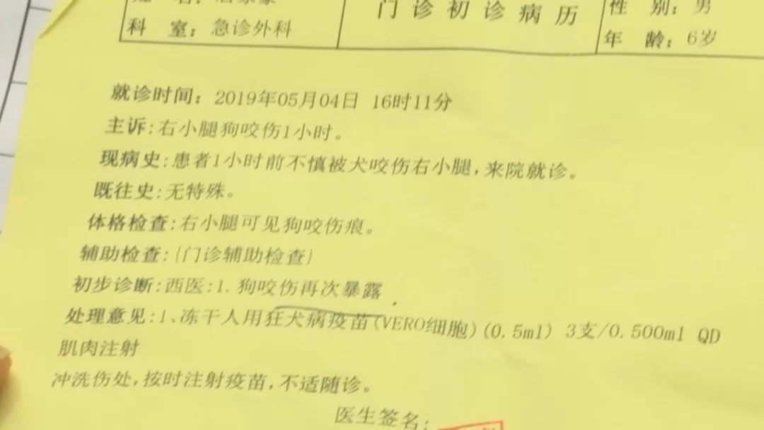 陶女士告訴記者,他們一家住在龍崗愛聯(lián),前些天兒子在附近玩耍,被突然從車底鉆出來的狗給咬傷了,事后她立馬帶兒子去醫(yī)院做檢查并打了狂犬疫苗。