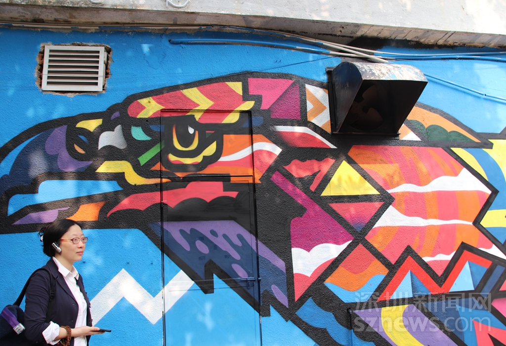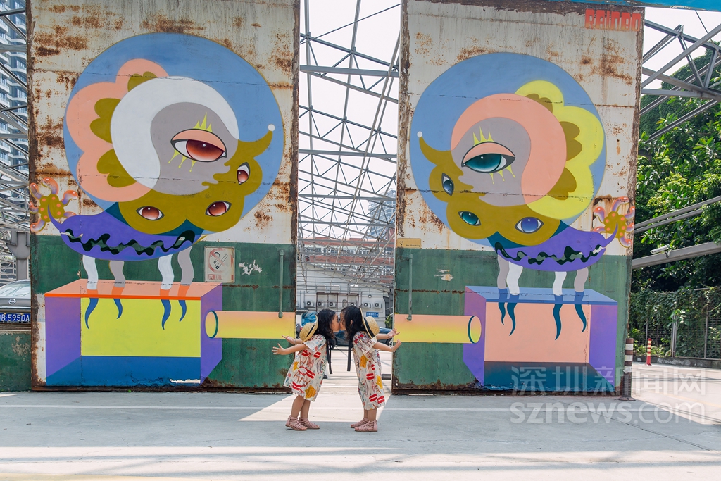 在城市公共空間中,涂鴉藝術(shù)不僅是一種重要的人文景觀,同時還能給人一種視覺享受,使單一的生活變得富有色彩。來自中國香港的全職藝術(shù)家彭怡擅長用涂鴉進行故事創(chuàng)作,帶來作品《雙觀》,以左右對稱相望的停車場守護神的形象感染車主與行人,傳達平穩(wěn)冷靜的力量。