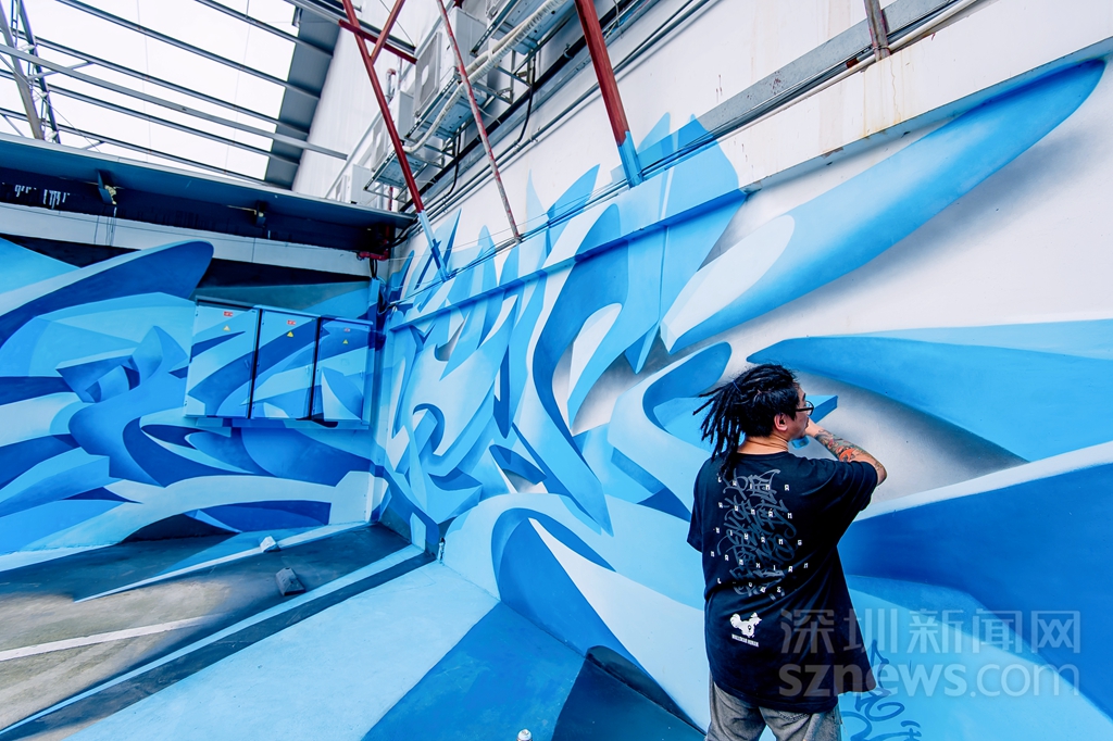 曾昭昶正在創(chuàng)作他的立體文字涂鴉作品《內(nèi)&外》(主辦方供圖)