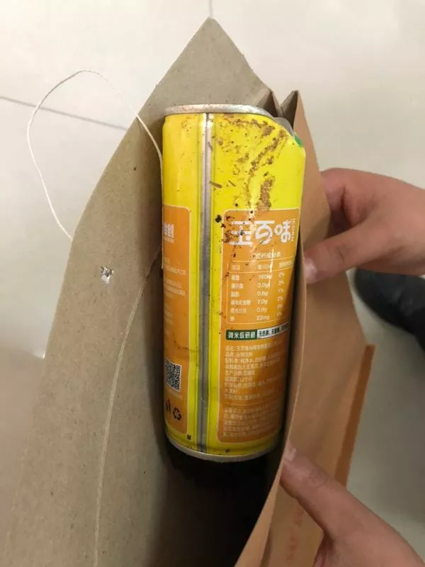 記者在小區(qū)物業(yè)管理處,見到了這個被封存的易拉罐,原來當(dāng)時拋下來的時候,這個罐子內(nèi)還有部分未喝完的飲料,增加了罐子的重量。