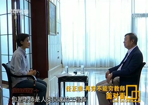 在1月17日,任正非接受《面對面》專訪中,任正非呼吁,把教育做好,國家才有未來。因此,要提高老師的待遇,再窮也不能窮教師,要讓優(yōu)秀的人才愿意去當(dāng)老師,讓優(yōu)秀的孩子愿意學(xué)師范,這樣就可以實現(xiàn)“用最優(yōu)秀的人去培養(yǎng)更優(yōu)秀的人”。而四個月后的這次采訪,他最想呼吁的依然是提高老師的待遇,再窮不能窮教師,讓社會各界都來重視基礎(chǔ)教育。