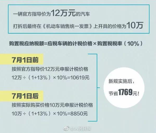 7月1日起,消費(fèi)者購(gòu)買車輛應(yīng)扣稅款將取決于實(shí)際支付金額