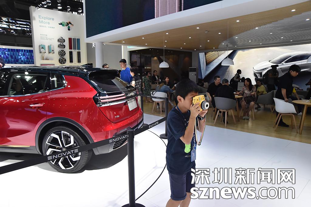 車展時逢周末,不少家長帶著自己的孩子前來參觀