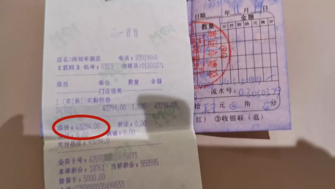 李小姐出示了這批衣服的購(gòu)物小票,時(shí)間是2017年11月。李小姐說(shuō),之所以會(huì)幫顧客墊付4萬(wàn)多元買(mǎi)衣服,一方面是為了服務(wù)好老顧客,另一方面是這單生意做成,會(huì)增加李小姐的業(yè)績(jī)。