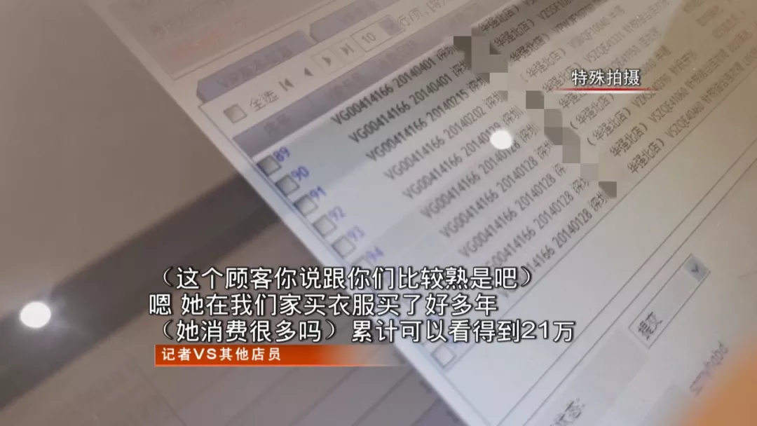 記者來(lái)到李小姐所在的女裝專(zhuān)柜了解情況。這個(gè)牌子衣服的標(biāo)價(jià),目前夏裝單價(jià)在2000-5000元,李小姐說(shuō)秋冬裝單件4000-7000元左右,屬于高端服裝品牌,當(dāng)時(shí)店里的一位熟客顏女士,選了11件秋冬裝,總價(jià)4萬(wàn)3千多元。
