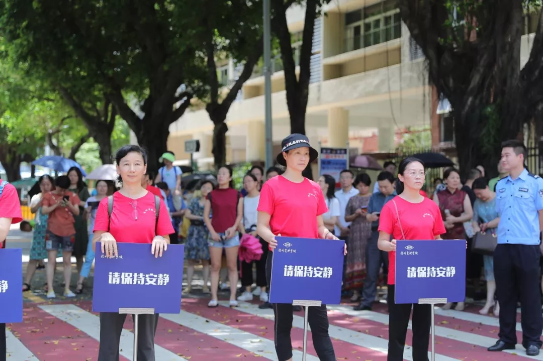考試開始和結(jié)束時,在深圳實驗學(xué)校中學(xué)部的考場外,家長們自發(fā)組織的義工服務(wù)隊也正在有序地維護著考場外的秩序。通心嶺派出所積極與本次家長義工服務(wù)隊的成員溝通,在考試結(jié)束后散場時能夠快速緩解人流,保證考場周邊的秩序。