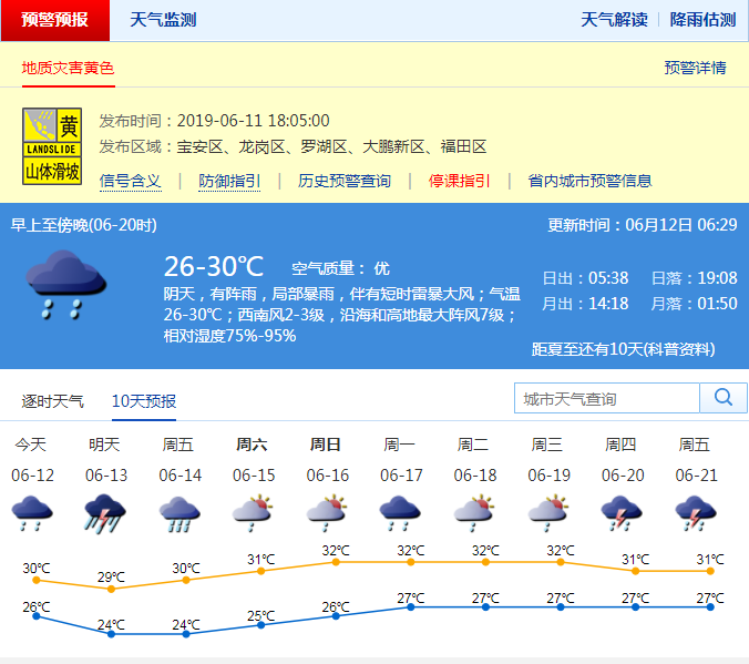 深圳新聞網(wǎng)2019年6月12日訊 10日下班高峰期的一場狂風暴雨橫掃深圳,不禁有網(wǎng)友疑惑,這難道是臺風嗎?這當然不是臺風,它是強對流天氣伴隨的短時大風,最大陣風有時甚至和臺風不相上下,雖然陣風強,但強對流大風的持續(xù)時間較短;“一秒天黑”的深圳,11日下班時段又有一場強雷雨橫掃,預計12、13日降雨仍頻密。