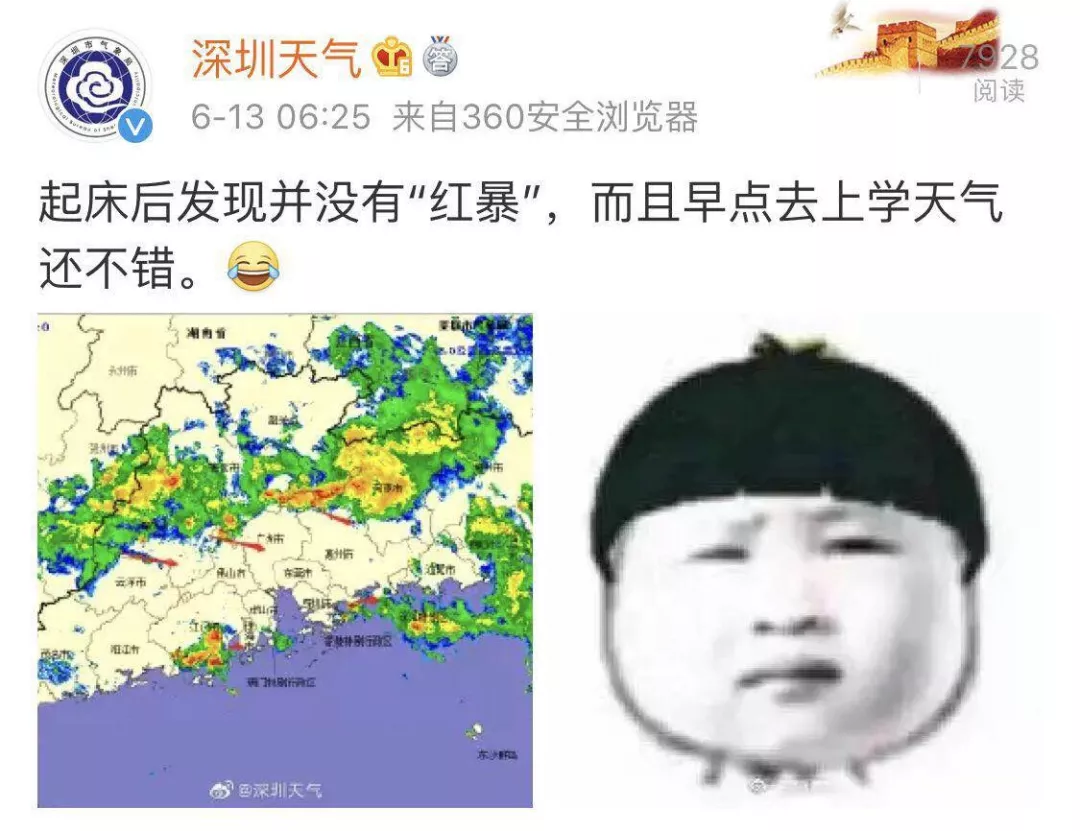 根據(jù)統(tǒng)計,從08年到現(xiàn)在,深圳市氣象局一共發(fā)布過32次暴雨紅色預(yù)警。你們以為這就代表了32次停課嗎?哈哈哈哈哈哈想得美,其中真正停課的只有9次,其余的都是在暑假、周末、夜間。將近12年,因?yàn)楸┯瓴磐A?次課(沒算單獨(dú)的臺風(fēng)停課),平均一年一次都不到。