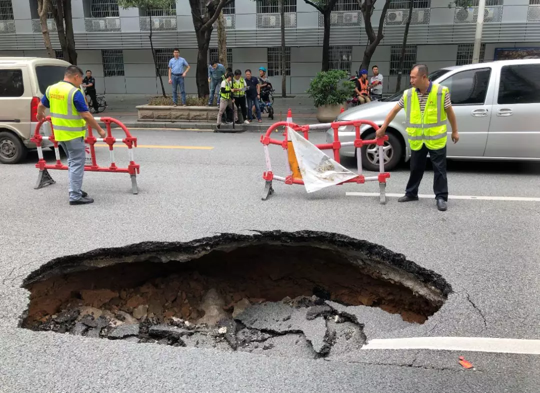 從圖片中可以看到,道路中間出現(xiàn)了塌陷。