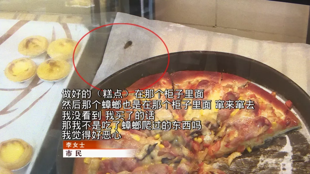近日,李女士在超市的面包柜臺(tái)里,看到有小蟑螂在圍著面包四處爬
