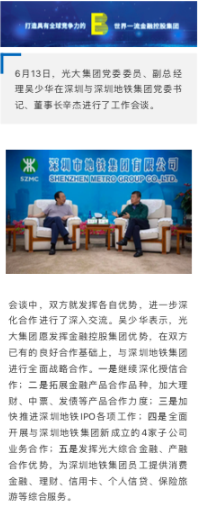 它發(fā)文稱(chēng):光大集團(tuán)正在與深圳地鐵加快推進(jìn)深圳地鐵IPO各項(xiàng)工作