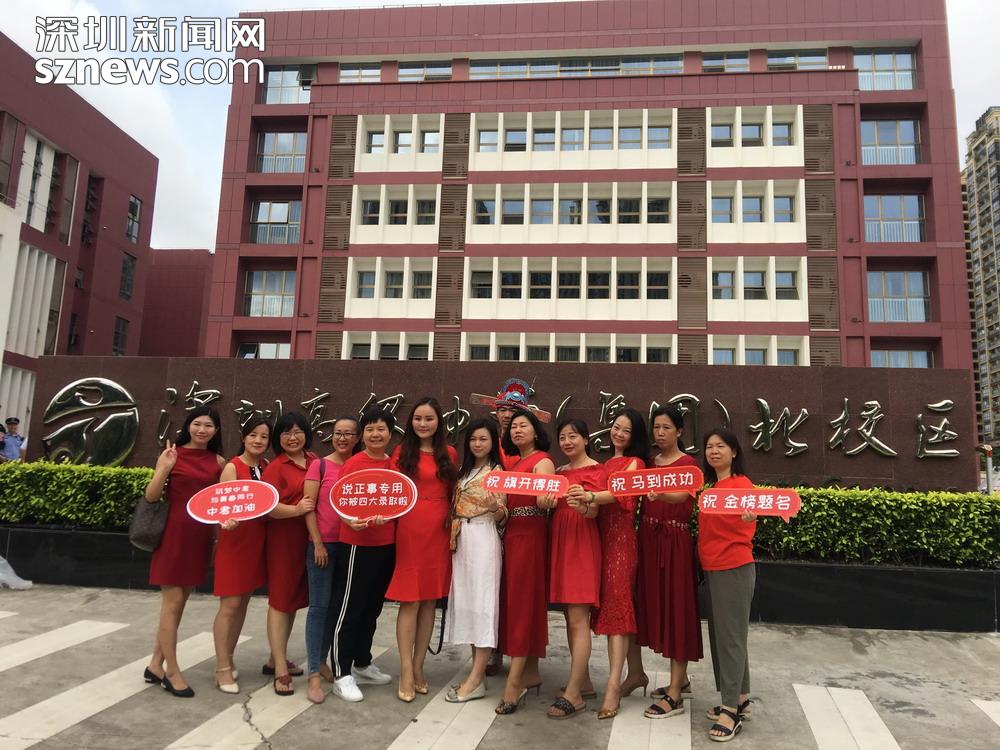 龍華區(qū)實驗學(xué)校的老師以及學(xué)生合影打氣,圖片攝于21日,由龍華區(qū)實驗學(xué)校的何小波老師提供。