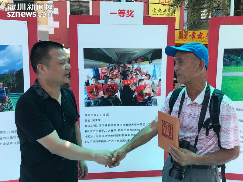 “我從報(bào)紙上看見深圳福彩舉辦的返鄉(xiāng)活動(dòng),覺(jué)得這個(gè)做公益獻(xiàn)愛心的活動(dòng)讓我很感動(dòng)。我想通過(guò)我的照片來(lái)彰顯深圳是一個(gè)大愛的城市,來(lái)讓大家看到深圳福彩的愛心宗旨?!?2歲的黃天肇憑借《福彩的祝福》作品榮獲本次大賽一等獎(jiǎng)。作為資深的攝影愛好者,他從深圳福彩舉辦“愛心福彩資助來(lái)深建設(shè)者春節(jié)返鄉(xiāng)”活動(dòng)開始,用相機(jī)記錄了十余年,“那個(gè)時(shí)候我都是用的傻瓜相機(jī)拍,獲獎(jiǎng)的作品就是我用傻瓜相機(jī)拍的,直到這兩年才開始用數(shù)碼相機(jī)?!睂?duì)于此次展覽,黃天肇認(rèn)為深圳福彩組織選出的98張照片,承載著深圳對(duì)孤寡老人、弱勢(shì)群體、特困戶的關(guān)心,彰顯了深圳人的大愛,也激發(fā)市民通過(guò)購(gòu)彩的方式奉獻(xiàn)愛心,他表示會(huì)一直用照片銘記這些珍貴的記憶。