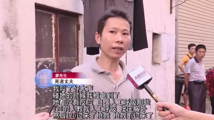 在聽到妻子大叫一聲后,廖先生馬上進(jìn)入浴室查看,發(fā)現(xiàn)妻子已經(jīng)倒在地上不省人事。廖先生當(dāng)下立即意識(shí)到,妻子很可能是觸電了,便立即將電閘關(guān)掉并撥打了120。