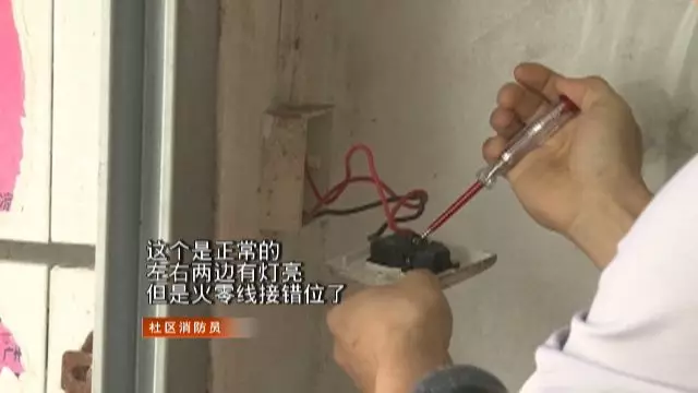 今天記者聯(lián)系了社區(qū)工作站前來檢查,工作人員使用簡易設(shè)備對(duì)室內(nèi)的插座展開排查,發(fā)現(xiàn)李女士家果然沒有地線。
