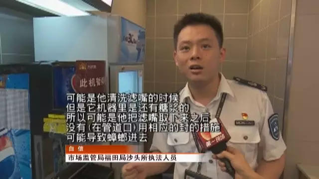 可能是他清洗濾嘴的時(shí)候,里面是個(gè)管道是空的,但是它機(jī)器里是還有糖漿的。這種糖漿特別容易吸引蟑螂或者異物進(jìn)去,所以可能是他把濾嘴取下來(lái)之后,沒有用封的措施,可能導(dǎo)致蟑螂進(jìn)去。然后把濾嘴裝上去 ,再可樂(lè)倒出來(lái)的時(shí)候,可能蟑螂就跟一起出來(lái)了 。