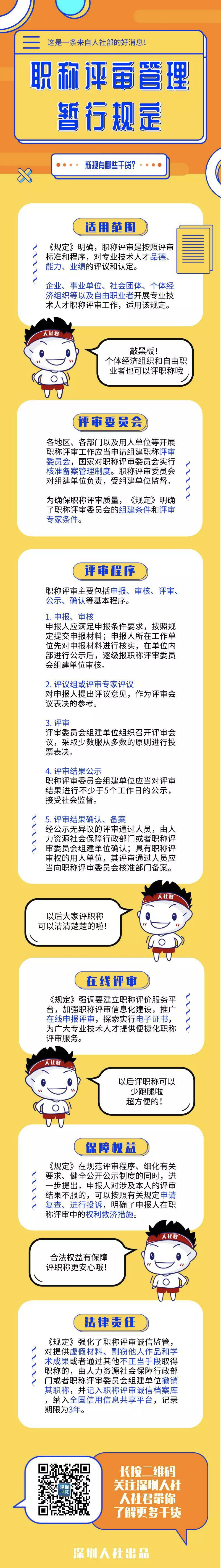 深圳特區(qū)報2019年7月12日訊 個體經(jīng)濟(jì)組織、自由職業(yè)者可以開展專業(yè)技術(shù)人才職稱評審;推廣在線評審,探索實(shí)行職稱評審電子證書;不正當(dāng)手段取得職稱的,記入職稱評審誠信檔案庫……7月11日,記者從深圳市人力資源和社會保障局獲悉,《職稱評審管理暫行規(guī)定》(以下簡稱《規(guī)定》)將于9月1日起施行,這是國家深化職稱制度改革、加強(qiáng)職稱評審管理、完善職稱政策法規(guī)體系的一項(xiàng)重要舉措。