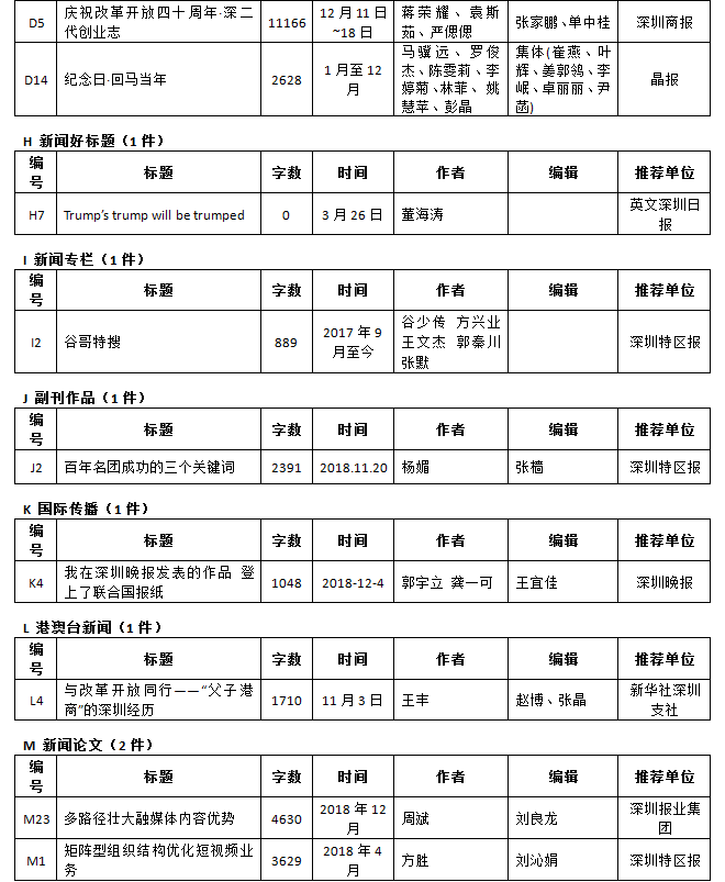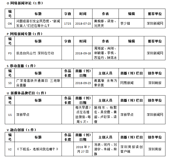第26屆(2018年度)深圳新聞獎獲獎作品目錄