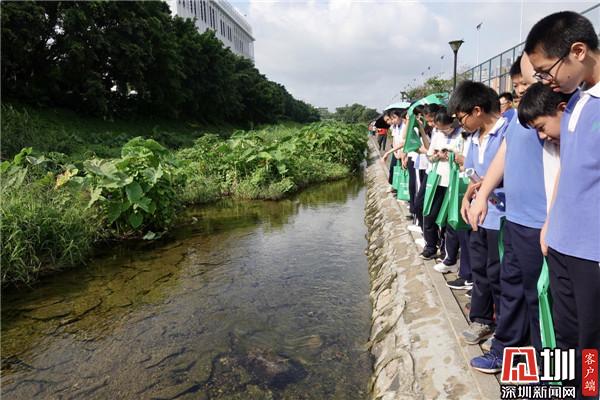 深圳新聞網(wǎng)訊(記者 彭桂紅 實(shí)習(xí)生 覃鈺清)7月13日早晨,艷陽(yáng)高照,羅湖區(qū)外國(guó)語(yǔ)學(xué)校和志愿者協(xié)會(huì)志愿者共計(jì)60多名學(xué)生和家長(zhǎng)來(lái)到了深圳河支流——水庫(kù)排洪河河畔,在東益志愿者協(xié)會(huì)志愿者的帶領(lǐng)下實(shí)地了解了河道保護(hù)情況以及巡河志愿者的日常工作,同學(xué)們化身“小河長(zhǎng)”與志愿者一起為河道“體檢”。