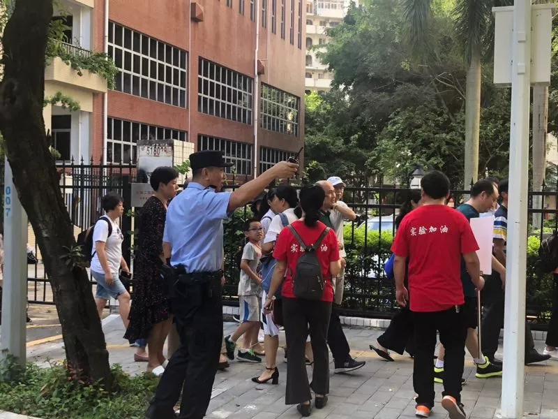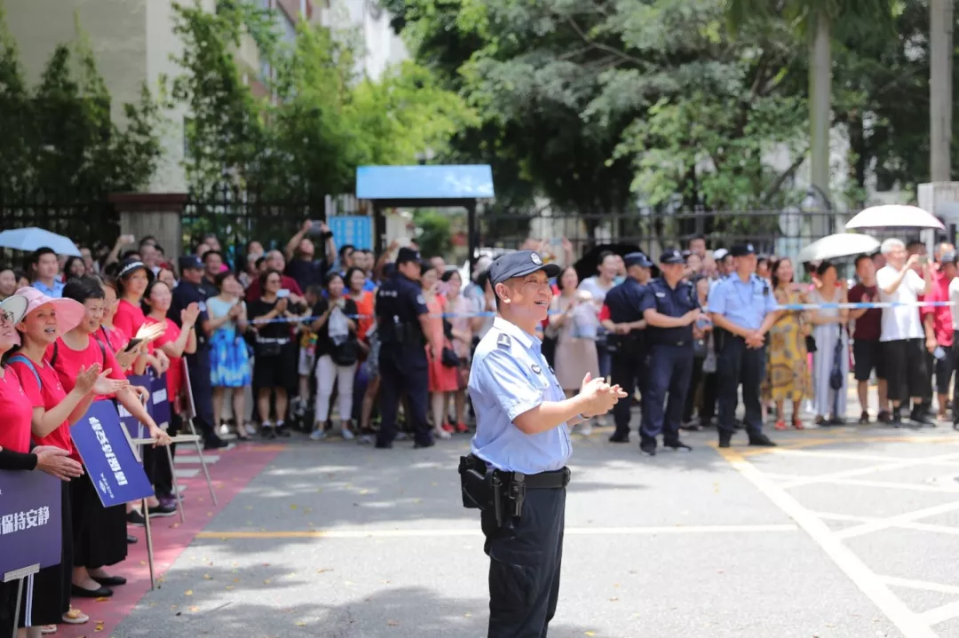 在深圳實(shí)驗(yàn)中學(xué)的校門外,正在執(zhí)勤護(hù)考的通心嶺派出所所長(zhǎng)林志強(qiáng)正跟送考的家長(zhǎng)們“嘮嗑”?!按蠹叶颊具@么久了,辛苦了!一會(huì)考試結(jié)束后,咱們來猜一猜第一個(gè)走出來的是男生還是女生?!薄拔也率悄猩??!薄拔也率桥??!奔议L(zhǎng)們一掃臉上焦急的表情,開始笑著討論起來。