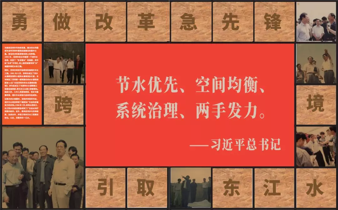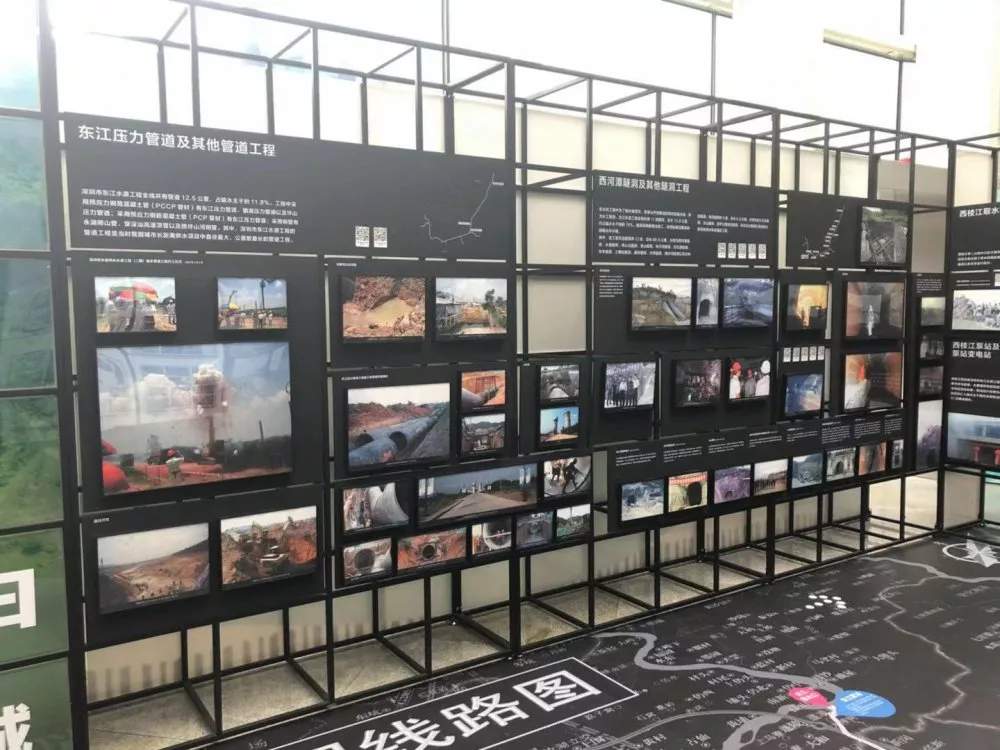 第三部分“清清東江水汩汩入鵬城”,著重展示東江水源工程建設(shè)的全過程。以工程線路為展覽線索,再現(xiàn)水務(wù)工作者在長達106公里的戰(zhàn)線上奮戰(zhàn)的場面。通過輸水設(shè)施的新舊照片對比,描繪出一條在深惠兩城平地崛起的深圳“生命線”。