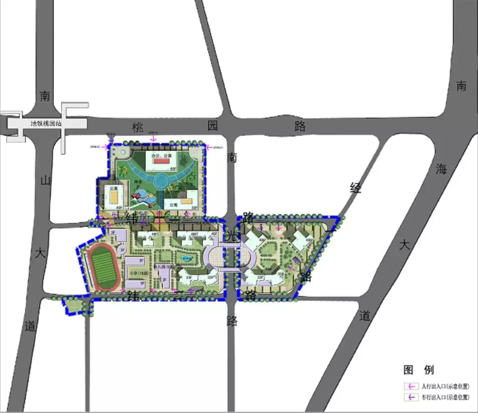 項目將采取TOD模式(以公共交通為導向的開發(fā)模式)開發(fā),計劃將居住、商業(yè)、辦公和公共空間解決在600米之內的范圍。該項目由1棟60F寫字樓公寓、2棟30F-40F公寓、9棟33F-48F超高層住宅以及1所18班小學、1所9班幼兒園組成。